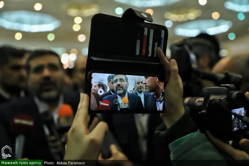سپس وزیر فرهنگ وارشاد اسلامی پشت تریبون قرار گرفت وضمن تبریک ایام فجر گفت : خوشحالیم این نمایشگاه با زحمت همکاران در حال برگزاری است البته دوست داشتم زودتر این نمایشگاه را حاج ملا میرزایی برگزار کند قرار بود آبان ماه این کار انجام شود ولی تاخیر افتاد، امیدوارم سال آینده دور خیز خوب داشته باشد این نمایشگاه برای ما مهم است.