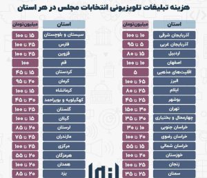 چنانچه نامزد نتواند تبلیغات خود را با قواعد مصوب تولید کند یا از تبلیغات تلویزیونی منصرف شود، مبلغ دریافتی برگردانده نخواهد شد». در نهایت با اعلام صداوسیما به نامزدها برای استفاده از ۲۰۰ شبکه محلی، رقم دریافتی از هر نامزد ۵تا ۷۰ میلیون خواهد بود که در تهران به بالای ۱۰۰ میلیون میرسد؛ مثلا در مورد شهر تهران، نامزد انتخاباتی برای ثبتنام در سامانه تبلیغات ۲۰ دقیقهای تلویزیون ویژه انتخابات مجلس، باید رقم ۱۵۰ میلیون تومان بپردازد.